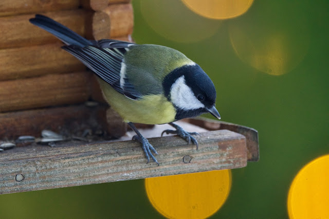 Hele åtte individer kunne jeg telle samtidig rundt det lille huset med solsikkefrø!